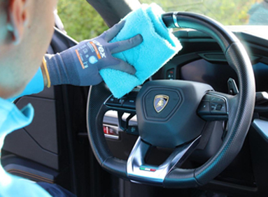 Cleaning of bodywork, windows, and rims. Application of a basic tire shine.